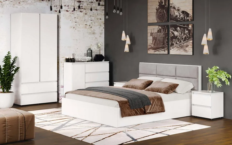 Ліжко двоспальне каркас + щит ДСП EVEREST Лайт КЛ-1400 Крафт Білий