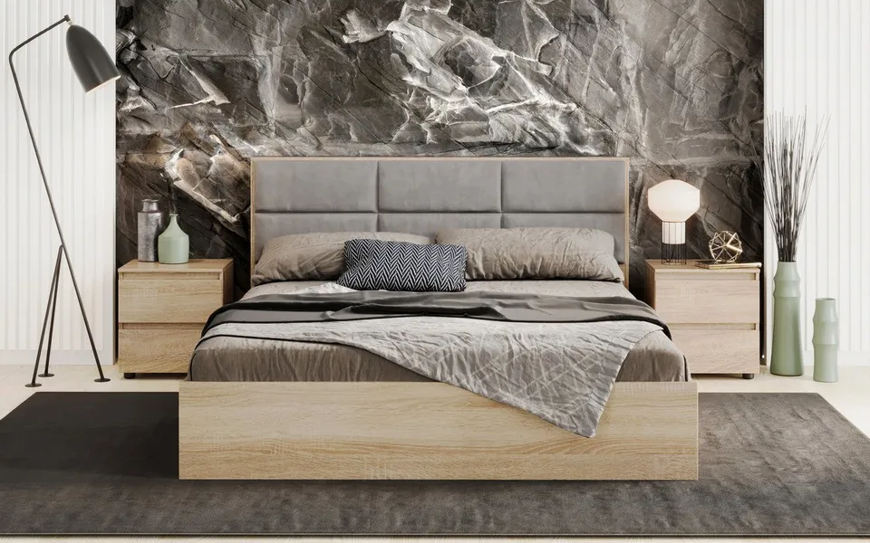 Ліжко двоспальне каркас + ламельний каркас EVEREST Лайт КЛ-1400 Сонома