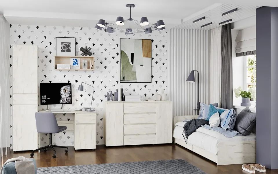 Комод EVEREST Лайт КЛ-3 4 ящики і дверця 1050x377x930 мм Крафт Білий