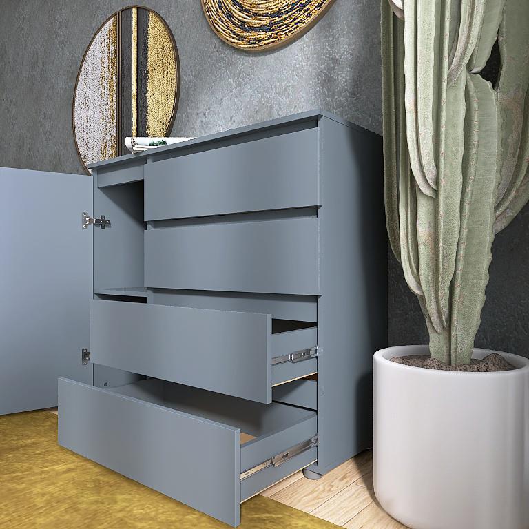 Цей компактний, але просторий комод легко впишеться в будь-який інтер'єр, чи то сучасний мінімалізм, класика чи скандинавський стиль. Завдяки чітким лініям і стильним фасадам він додасть нотки затишку та елегантності у вашу спальню, вітальню або передпокій.