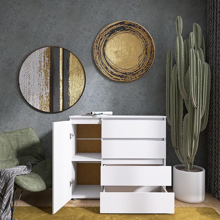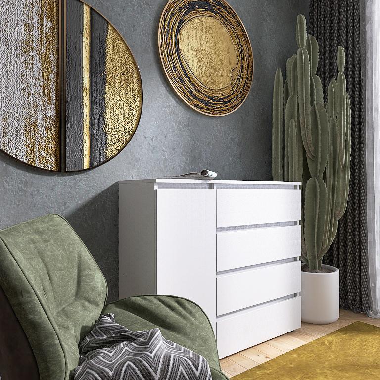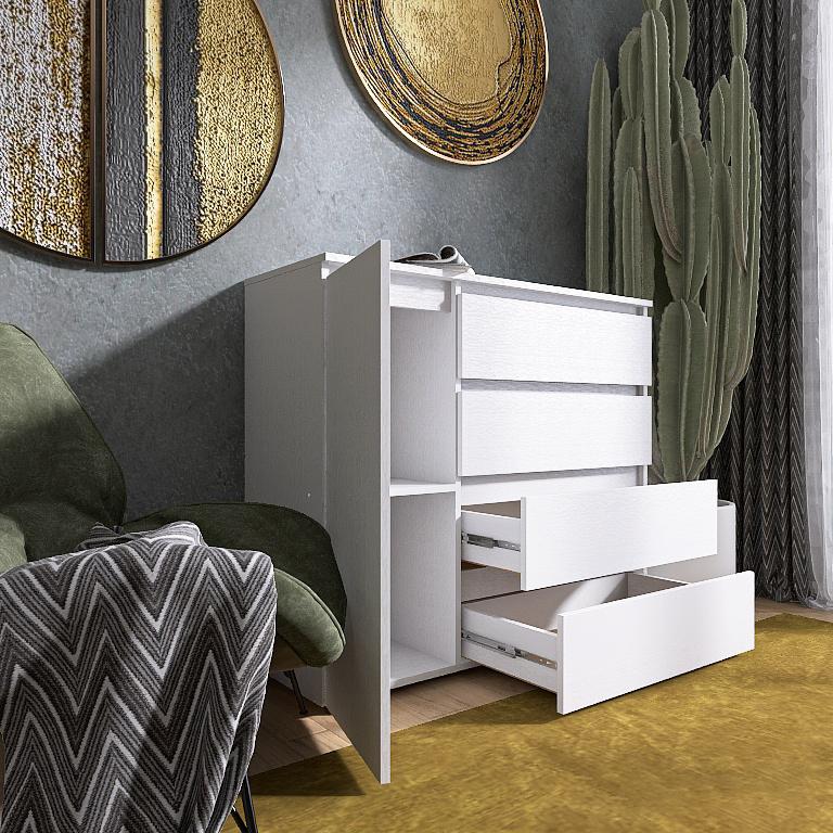Чотири просторі шухляди, які забезпечать зручне зберігання одягу, білизни та інших речей.
