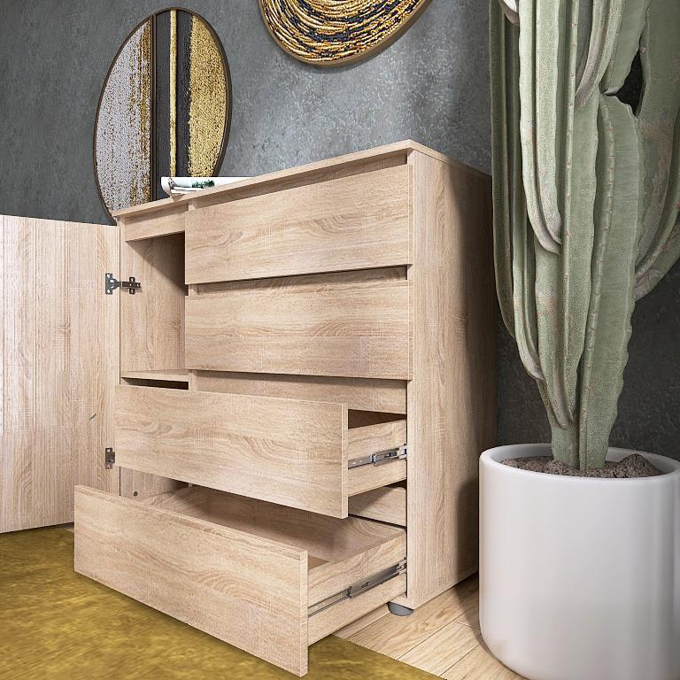 Комод EVEREST Лайт КЛ-3 4 ящики і дверця 1050x377x930 мм Сонома