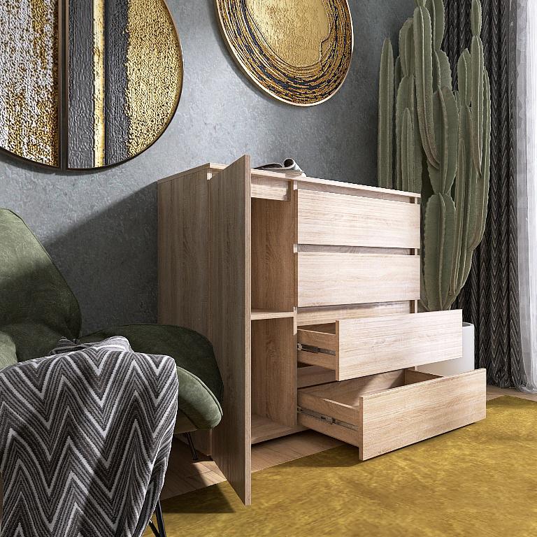 Чотири просторі шухляди, які забезпечать зручне зберігання одягу, білизни та інших речей.