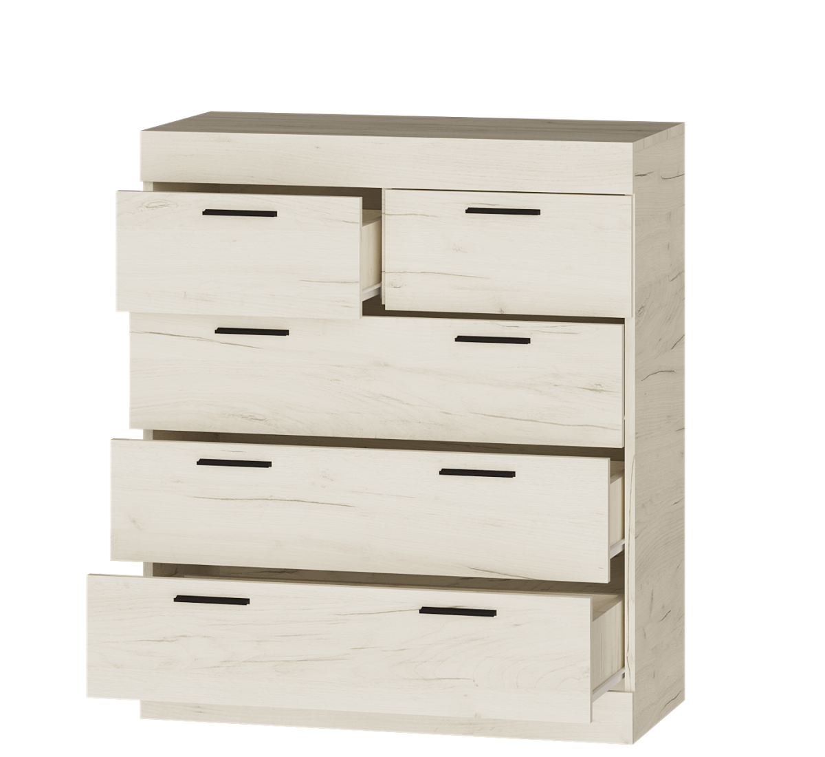 Кромка ПВХ (1 мм) захищає комод від вологи, механічних впливів і передчасного зносу.