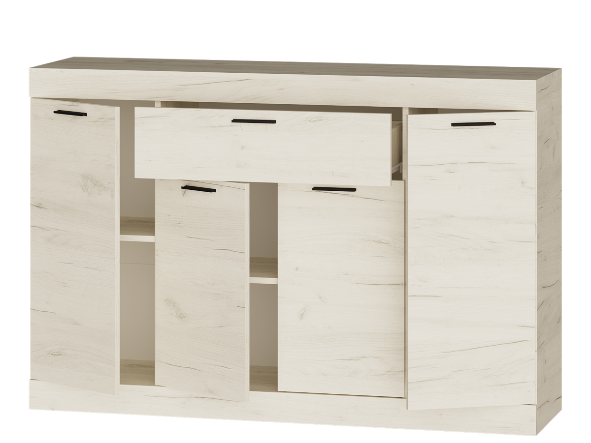 Орієнтований на збільшену кількість розпашних дверцят, включає три ніші з полицями і одну висувну шухляду.