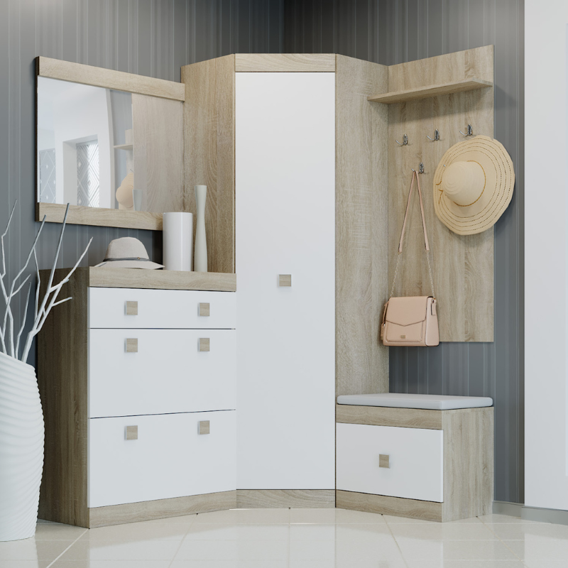 Кутова шафа EVEREST Соната 700 – це стильне й функціональне рішення для організації простору у передпокої, спальні або гардеробній. Компактні розміри дозволяють розмістити її навіть у невеликому приміщенні, а сучасний дизайн робить її універсальним елементом інтер’єру.