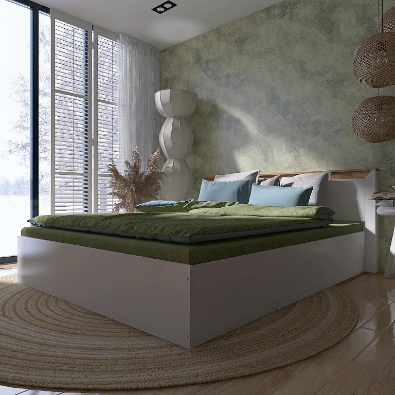 Ліжко двоспальне EVEREST Нордік 1600 з ламельною основою Дуб крафт золотий + Білий