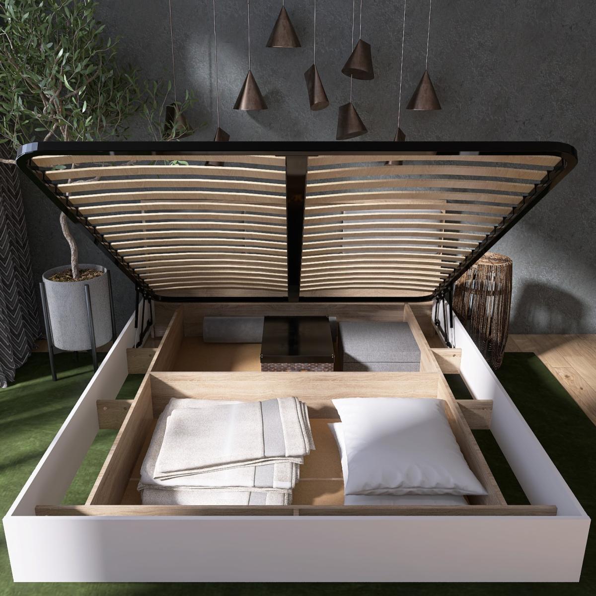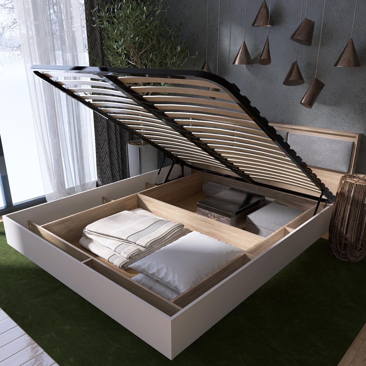 Ліжко двоспальне EVEREST Сіті 1400 з підйомним механізмом і ламельною основою Сонома + Білий