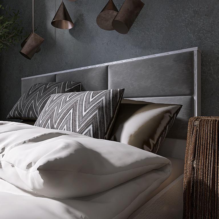 Узголів'я ліжка оснащене прошарком з ППУ та обтягнуте жакардовою тканиною, що робить його м'яким та зручним для опори.