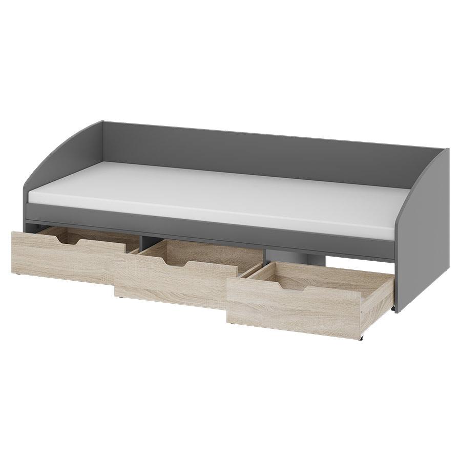 Ліжко розраховане під матрац розміром 800×1900 мм і оснащене захисною спинкою з боковими елементами, що забезпечують комфорт і безпеку під час сну та відпочинку. У комплект входять висувні ящики для зберігання, які за бажанням можна замовити в інших доступних кольорах.