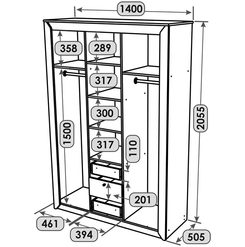 Шафа 1400 мм з колекції Нордік – це зручне й просторе рішення для зберігання одягу, взуття та аксесуарів. Завдяки великій місткості вона ідеально підходить як для повсякденного гардеробу, так і для сезонного зберігання речей. Стильний дизайн гармонійно впишеться в будь-який інтер’єр.