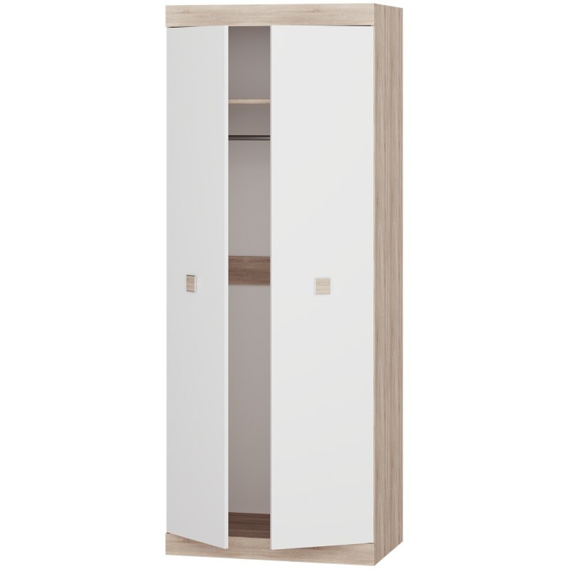 Шафа 800 з колекції Соната – це універсальна й сучасна модель, що підходить для передпокою, вітальні або дитячої кімнати. Завдяки лаконічному дизайну та продуманому внутрішньому наповненню шафа гармонійно поєднується з іншими меблями, забезпечуючи зручне зберігання речей.