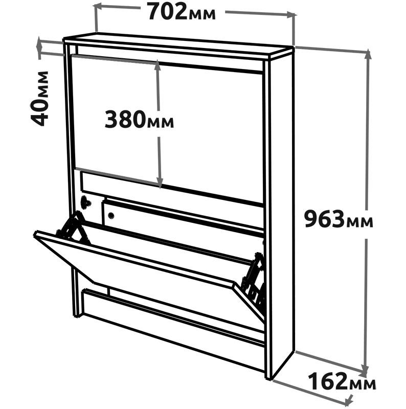 Два відділення з відкидними фасадами для зручного зберігання взуття