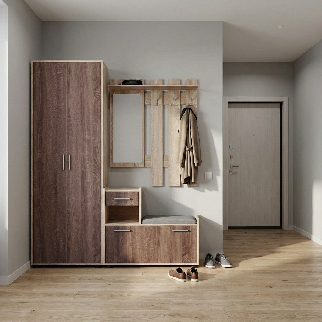 Тумба забезпечує зручне зберігання взуття та аксесуарів, а посадочне місце підвищує комфорт під час щоденного використання.