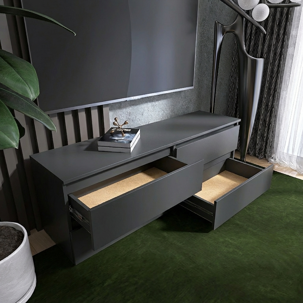 Зручне зберігання – 4 просторі висувні шухляди, призначені для розміщення пультів, документів, аксесуарів та інших речей.
