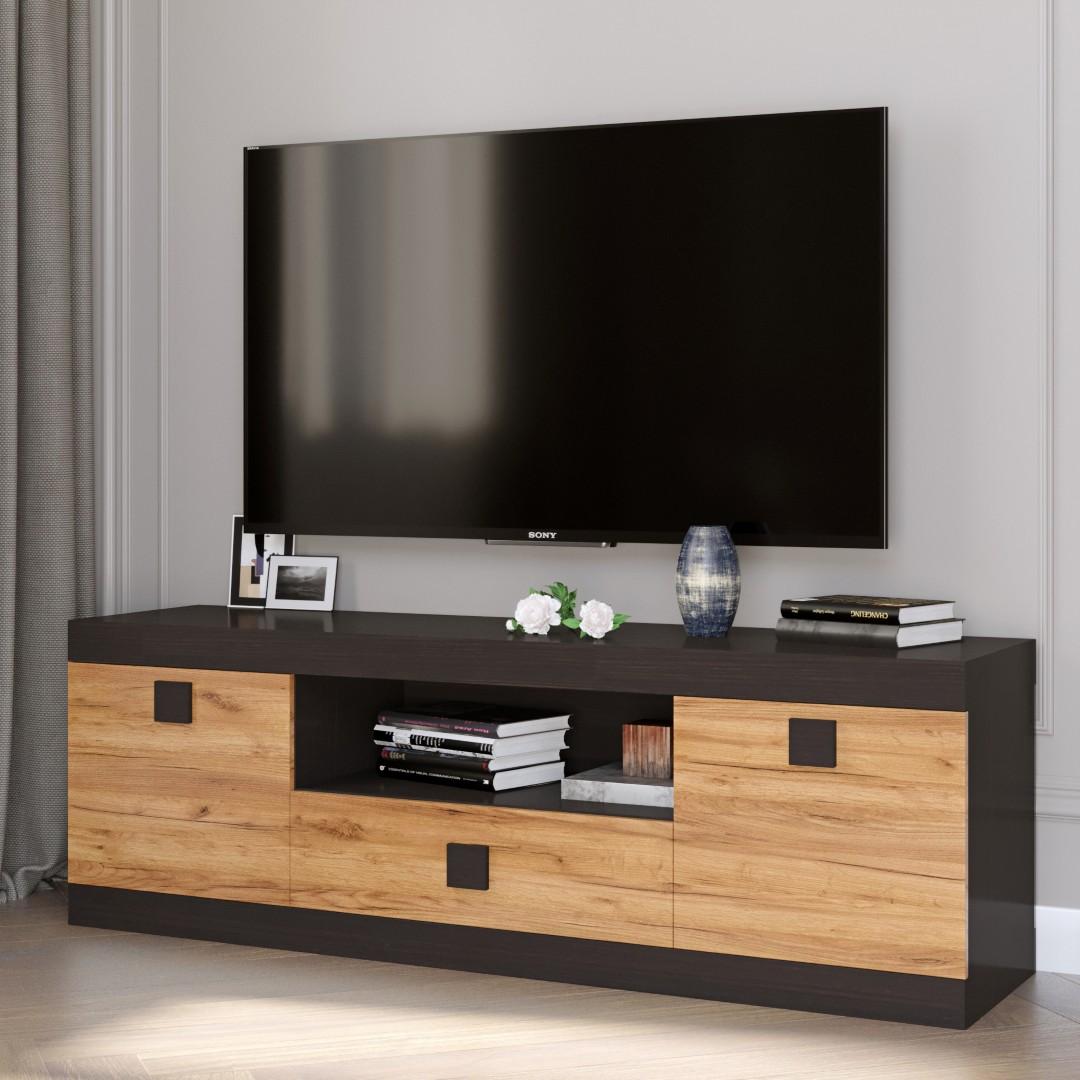 Тумба під ТВ-1500 EVEREST Соната 1500х376х500 мм Венге темний + Дуб крафт золотий