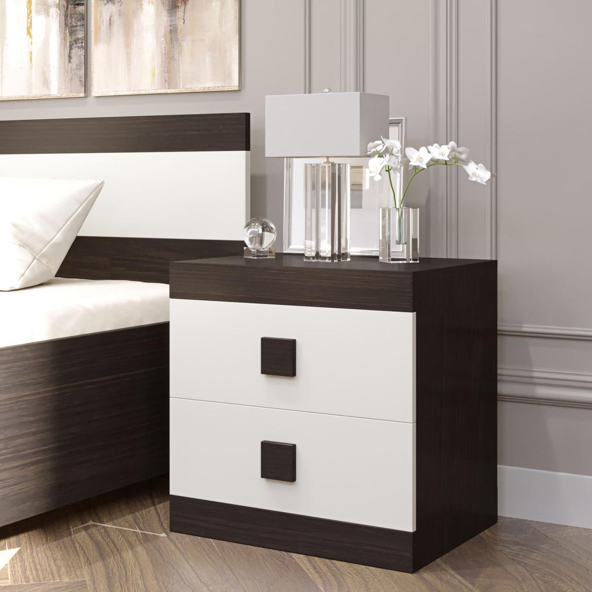 Соната Тумба приліжкова Венге темний + Білий – стиль і зручність у спальні.