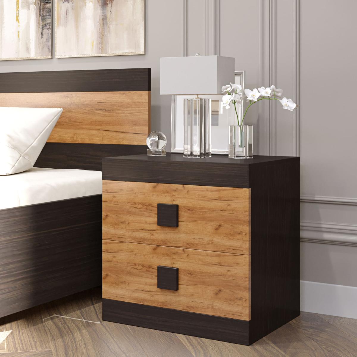 Соната Тумба приліжкова Венге темний + Дуб крафт золотий – стиль і зручність у спальні.