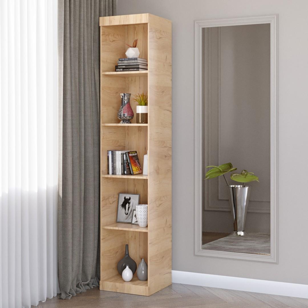 Функціональність – пенал оснащений п’ятьма просторими полицями, на яких зручно розміщувати книги, документи, декоративні елементи або особисті речі.