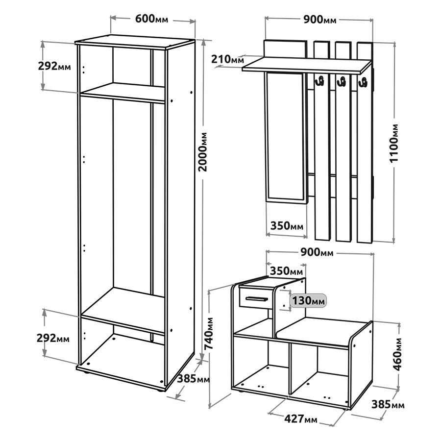 Габаритні розміри (Ш×В×Д): 601×385×2100 мм