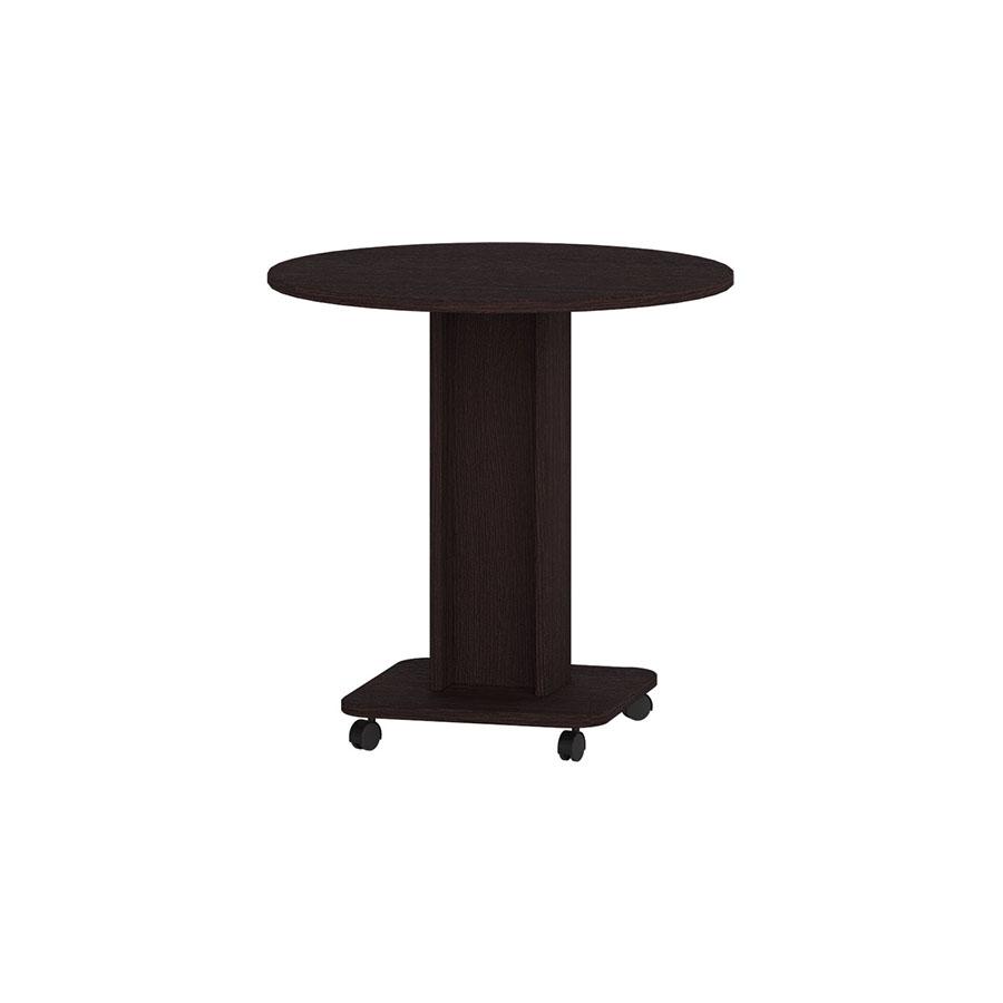 Конструкція передбачає круглу стільницю, стійку центральну опору та основу на роликових колесах, що забезпечує мобільність і зручність переміщення приміщенням.